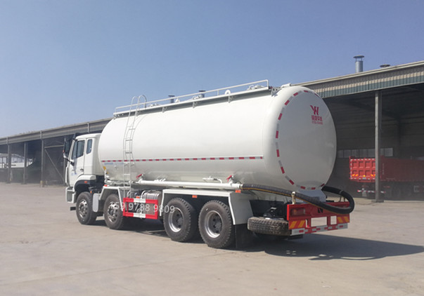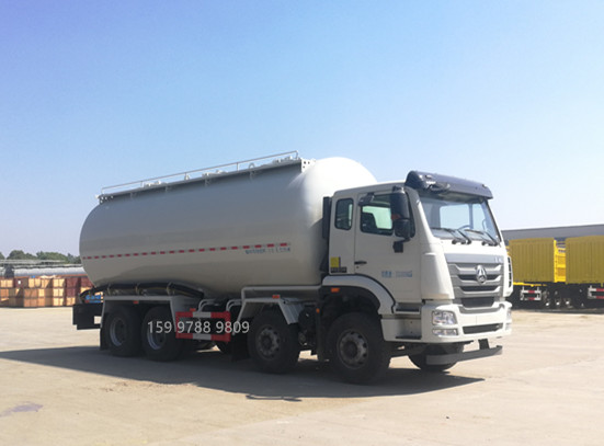 重汽前四后八干混砂漿車已完工,準備發車!重汽干混砂漿車配置:選用重汽豪瀚前四后八輕量化底盤,白色平頂駕駛室,MC07.34-50國五340馬力發動機,重汽10檔變速箱,HF7前橋,457后橋,12R22.5真空胎,駕駛室電動舉升,電動玻璃、電動空調,中控門鎖,罐體采用輕鋼制作,公告容積30方,封頭5mm,筒體4mm,兩倉三進料口設計,福達10方空壓機,砂漿車專用蝶閥、安全閥,標配8米砂漿專用卸料管。