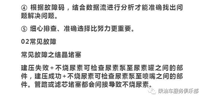 一般來說,卡車不燒尿素,好處就是省下不少尿素錢,壞處就是會造成卡車限扭矩,產生空氣污染。即使屏蔽了后處理系統,時間長了也會導致后處理部件大幅損壞,得不償失。現在路上有流動抓尾氣超標的,0.8秒查一輛車,抓到一次罰款就夠買一兩年的尿素了,如果你改裝后處理系統了,服務站是不會給你按保修算的。所以當發動機不燒尿素的情況時,我們就需要仔細的處理了。