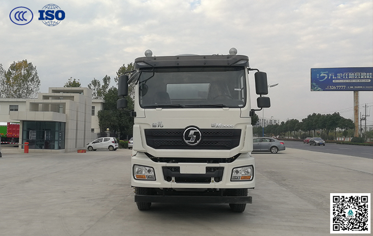1、底盤先用陜汽集團新德龍M3000干混砂漿專用底盤,濰柴300馬力國五,法士特10檔變速箱,匹配陜汽漢德 5.5T前橋,11.5T雙后橋,11.00R20鋼絲胎,后橋速比選用4.265,高時速可以達到80km/h,濰柴發動機