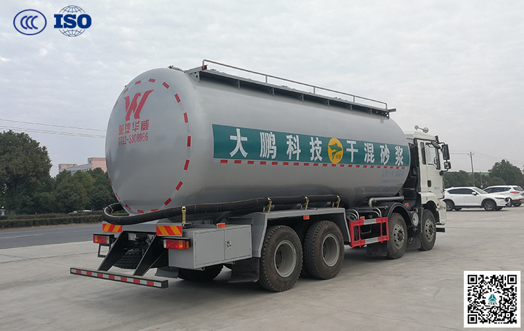 2、整車長度10.02m,專為干粉砂漿運輸設計,可適應不同工地的運輸條件要求;