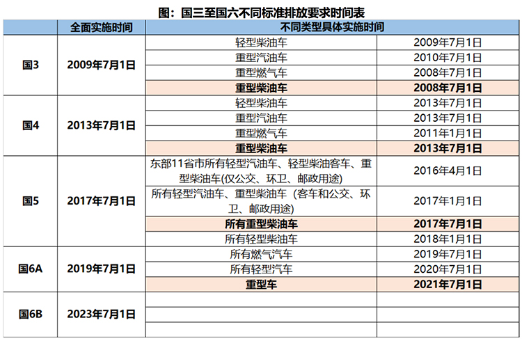 2021年下半年開始國六A全面切換替代國五,2023年起國六B上線,更嚴格標準帶來新老車型切換需求。