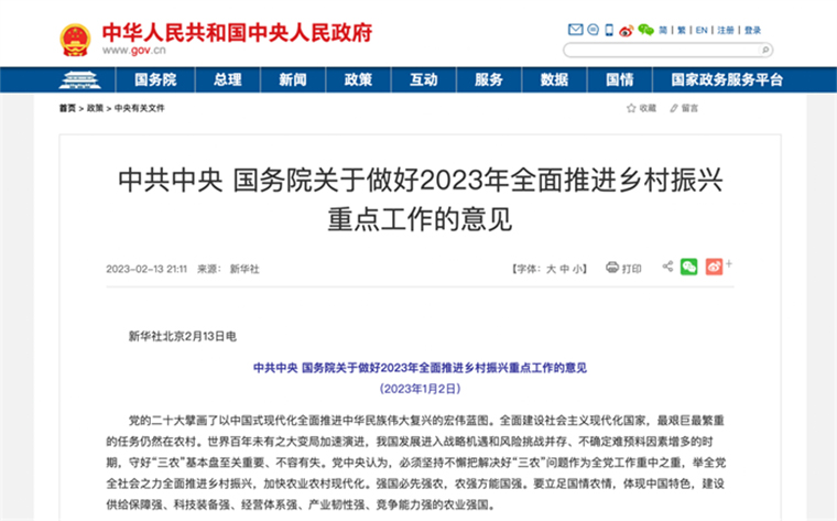 2月13日,《中共中央 國務院關于做好2023年全面推進鄉村振興重點工作的意見》發布。《意見》明確加快發展現代鄉村服務業,實施設施農業現代化提升行動,加快冷鏈物流設施建設;做大做強農產品加工流通業,完善農產品流通骨干網絡,改造提升產地、集散地、銷地批發市場,布局建設一批城郊大倉基地;支持建設產地冷鏈集配中心,統籌疫情防控和農產品市場供應,確保農產品物流暢通;加快完善縣鄉村電子商務和快遞物流配送體系,建設縣域集采集配中心,推動農村客貨郵融合發展,大力發展共同配送、即時零售等新模式,推動冷鏈物流服務網絡向鄉村下沉;鼓勵有條件的地區開展新能源汽車和綠色智能家電下鄉。