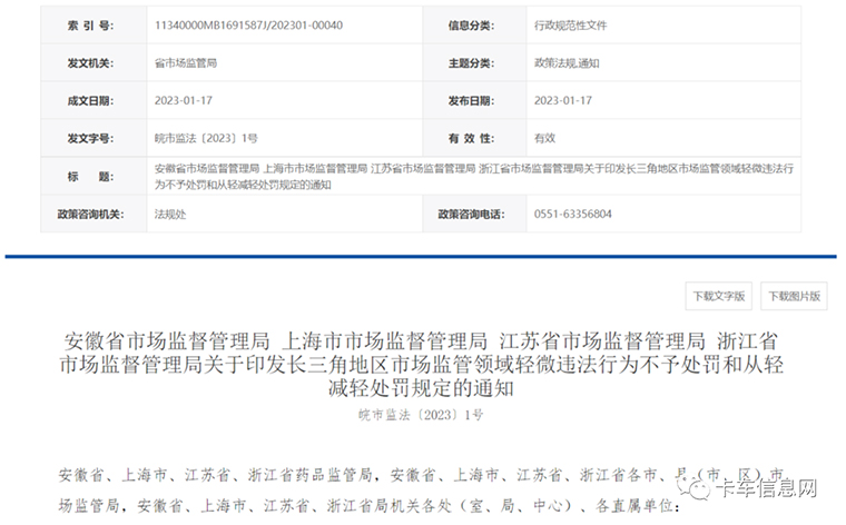 日前,滬蘇浙皖市場監管部門聯合出臺規范性文件《長三角地區市場監管領域輕微違法行為不予處罰和從輕減輕處罰規定》,《規定》自今年3月1日起正式施行,有效期5年。 這次出臺的《規定》對違法行為輕微、危害后果輕微、及時改正、主觀過錯、初次違法等裁量要素進行了統一規范、細化。