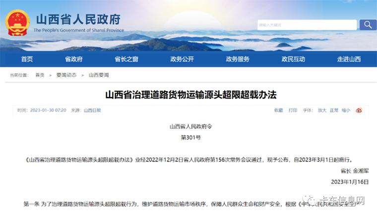 2023年3月1日,《山西省治理道路貨物運輸源頭超限超載辦法》將正式施行。山西省高速公路出入口超限檢測實行“逢車必檢,超載必究”,率先在全國實現所有高速公路收費站出入口貨車100%稱重檢測。