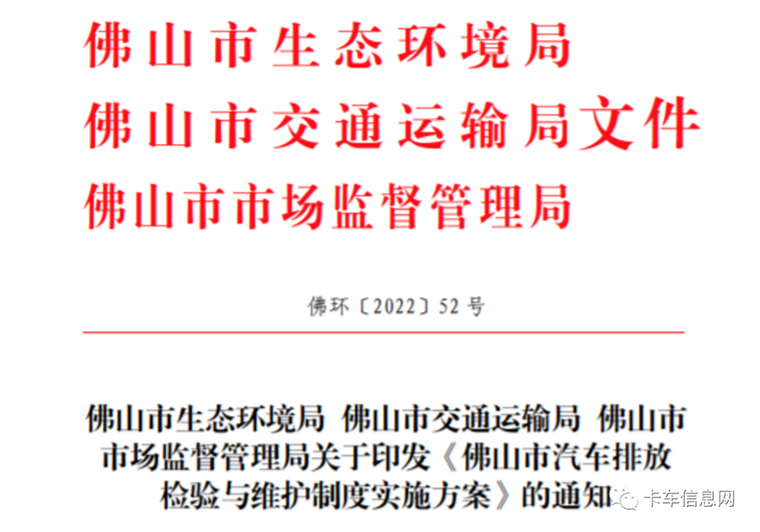 在2023年1月10發布了《佛山市汽車排放檢驗與維護制度實施方案》,要求從3月1日起,對佛山汽車排放檢驗機構排放檢驗不合格的車輛,需到具有資質的汽車排放性能維護站進行維修治理,汽車排放檢驗機構查詢到相關維修記錄后,方可安排車輛進行復檢,復檢合格后才能上路行駛。